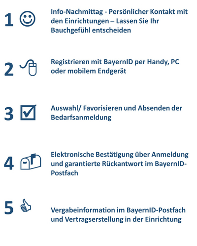 Sie füllen nur eine Anmeldung aus, favorisieren die gewünschten Einrichtungen und erhalten eine Eingangsbestätigung sowie garantiert zum Zuteilungsstichtag eine Antwort in Ihren Postkorb. Der elektronische Service im Bürgerservice-Portal steht Ihnen stressfrei täglich 24 Stunden zur Verfügung.